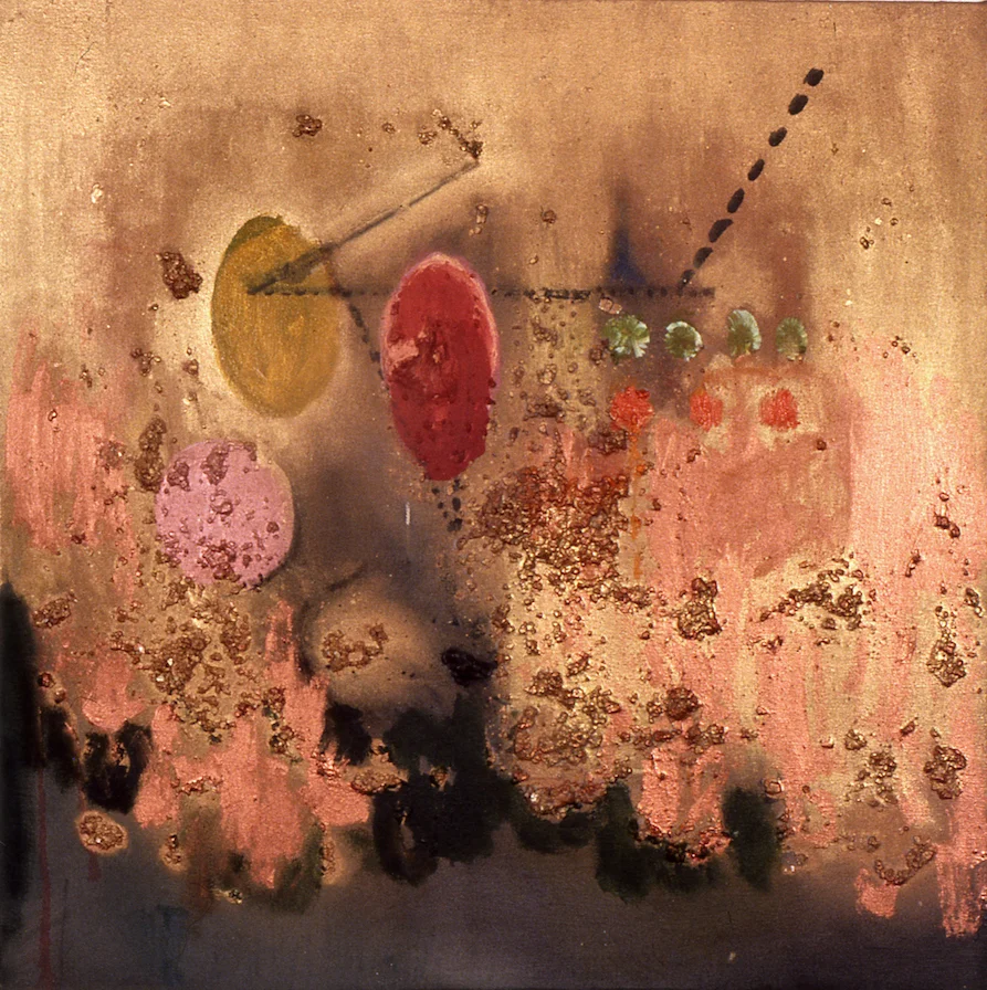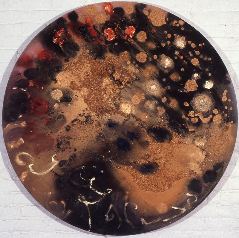 ALCHEMY, 1989, acrylic, metallic paint, polymer resin, mica, sand on canvas, 48" diameter