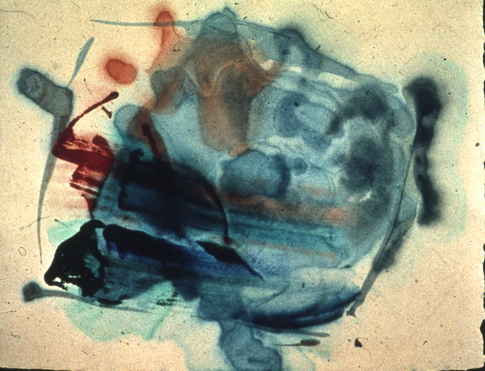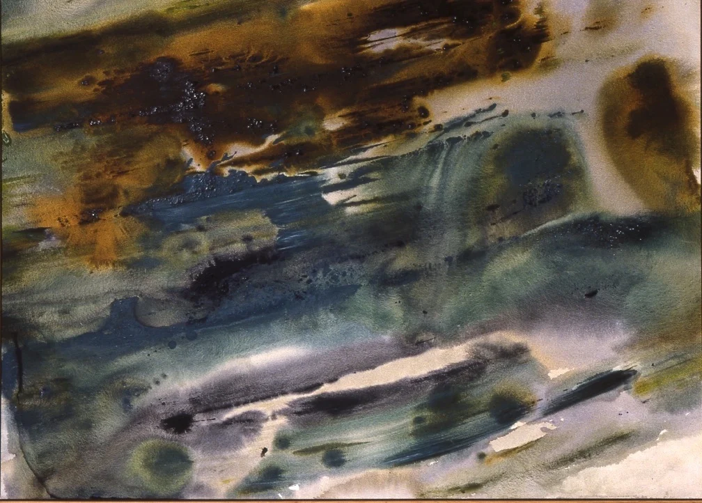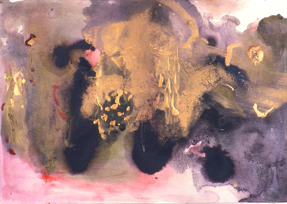 Fire and Ice, Story Of The Eye, 1984, acrylic, poured pigment, broom swept rhoplex on canvas, 55" x 72", Private Collection, Boston MA