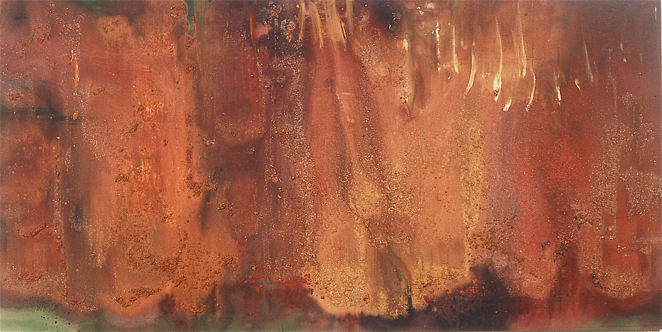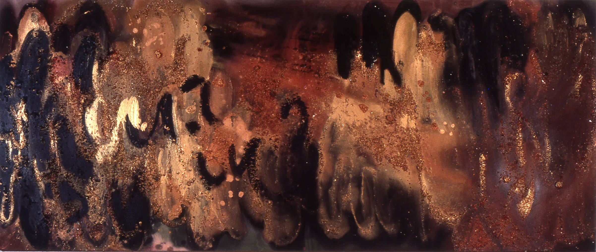 SECRET DOCTRINE, 1985, acrylic, mica on canvas, 48" x 108", Private Collection, NY