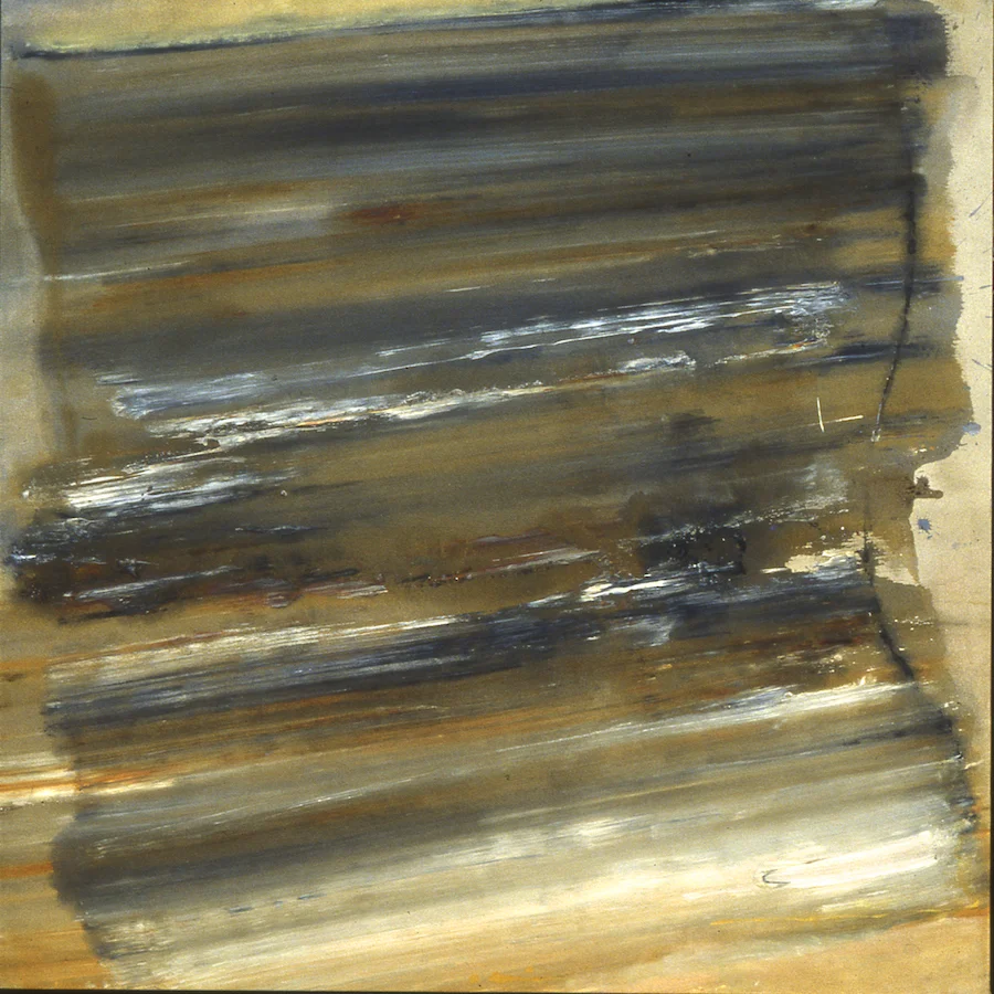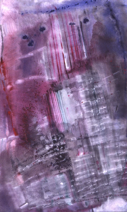 Amora, 1981, acrylic, poured pigment, gesso, broom swept rhoplex on canvas, 72" x 48"